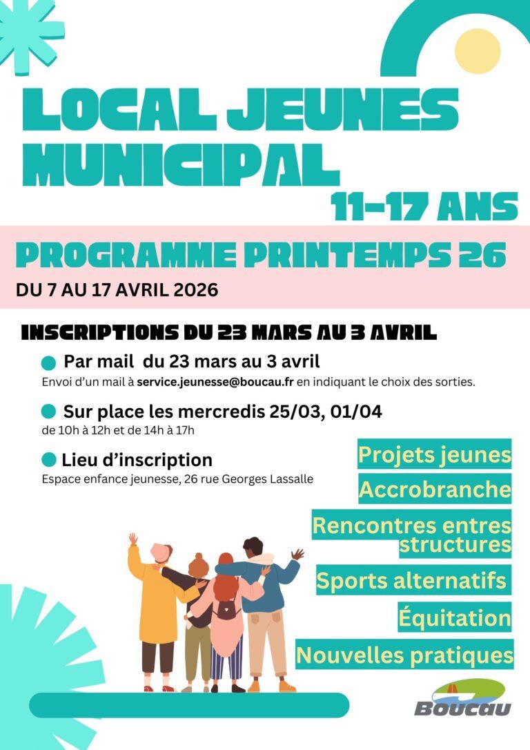 Du 7 au 17 avril 2026, l’équipe du Pôle Enfance Jeunesse attend les ados au Local Jeunes Municipal pour des vacances animées !