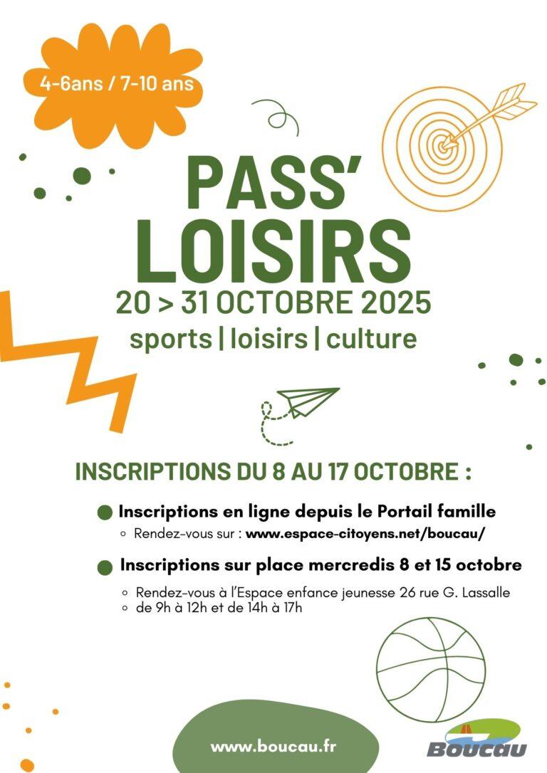 Proposé durant les vacances par le Pôle Enfance Jeunesse de la Ville de Boucau, le Pass’Loisirs vise à permettre aux jeunes Boucalais de 4 à 10 ans de découvrir et de s’initier à un sport, dans un esprit de détente et de loisirs. Les places sont limitées pensez aux inscriptions du 8 au 17 octobre 2025.