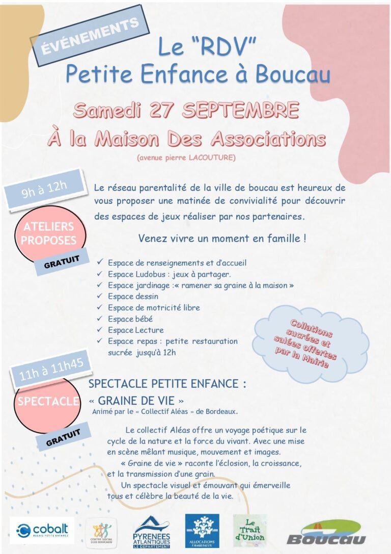 Le réseau Petite Enfance/Parentalité de la Ville de Boucau organise le 27 septembre à la Maison des Associations une matinée de convivialité autour d’espaces de jeux et d’ateliers proposés par plusieurs partenaires.