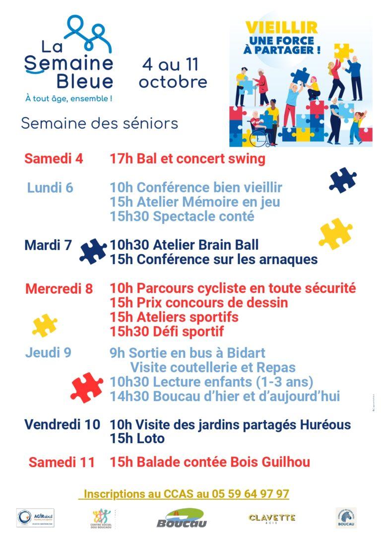 Du 04 au 11 octobre, Boucau mettra les aînés à l’honneur. La thématique de la Semaine Bleue en 2025 portera sur : « Vieillir, une force à partager ! ».