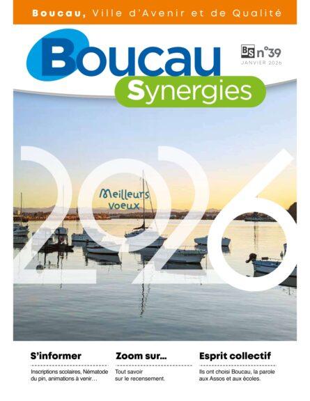Boucau Synergies n°39 Publié le : 20 janvier 2026 Élections municipales et intercommunales : comment ça marche ? 10 mars 2026 Arrêt du service de ramassage des végétaux à Boucau 02 mars 2026 Vacances d’hiver pour les 11-17 ans : les inscriptions vont démarrer … 27 janvier 2026 L’APE Jean Abbadie recherche des bénévoles pour son nouvel événement sportif : La Trace de Boucau 05 mars 2026 Activité de jet ski : appel à projets à la Cale de Boucau 04 mars 2026 Retour vers toutes les actualités