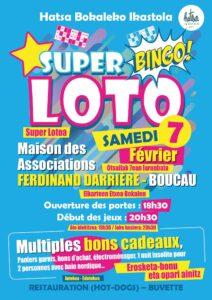 Bokaleko Ikastola organise un super loto le samedi 7 février à la Maison des Associations. Ouverture des portes : 18h30 / Début des jeux : 20h30. Buvette et restauration sur…