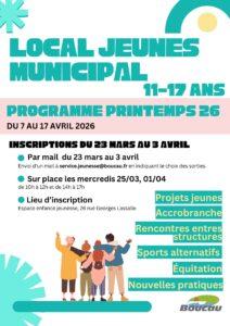 …avril 2026 inscriptions par mail du 23 mars au 3 avril 2026 Envoi d’un mail à en indiquant le choix des sorties. inscriptions sur place les mercredis 25/03 et…